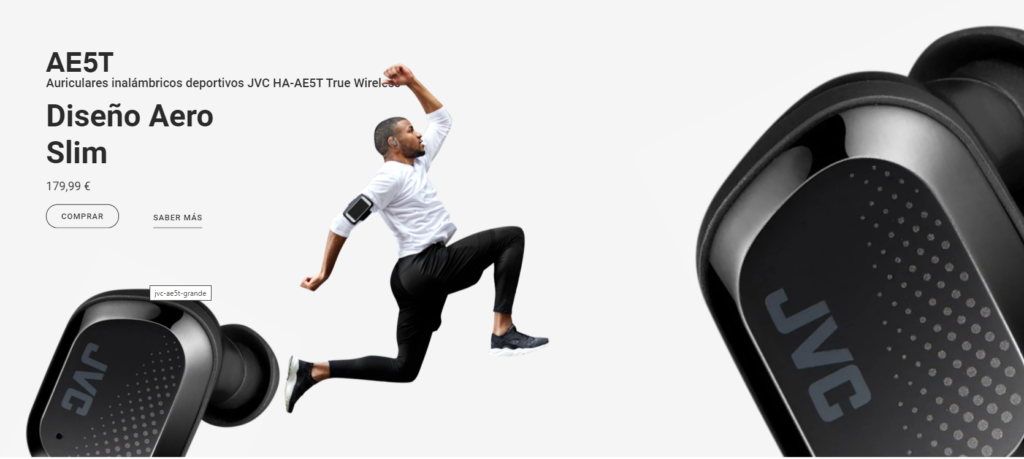 En este espacio comercial se muestra lo mejor de la marca en auriculares inalámbricos para deportistas y personas con un estilo de vida dinámico. mediante una oferta de producto con altas prestaciones de audición. La marca JVC ha apostado por acercarse a su público con un eCommerce sugerente y persuasivo que busca la complicidad del público a quién se dirige. Un espacio imaginativo, cargado de efectos dinámicos, acorde con la propia filosofía del producto.